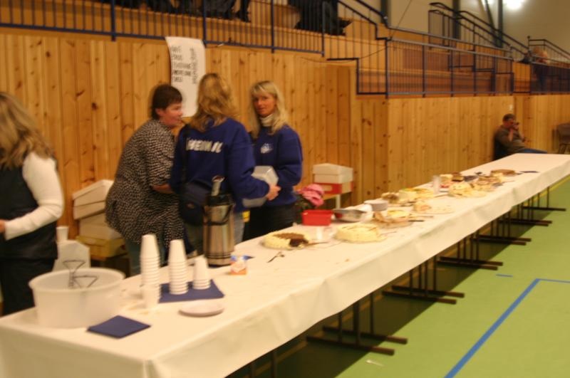 Det lokale musikk korps hadde tydelig ligget i lang trening. Nymalte flaggstenger og nye norske flagg var kjøpt inn og vaiet forventningsfullt mot oss flere kilometer før vi ankom arena. Flotte barneløp var lagt sentralt tett inn mot mesterskapsøvelsene. Ordføreren holdt en engasjert åpningstale, og var tilstede under hele mesterskapet, også da Rogaland fikk tildelt dette mesterskaps eneste gullmedalje – stafett menn veteran 35-39. Samtlige 27 stafett lags utøvere ble hentet opp på scenen for tildeling av deltakerpremie. Et annet lite poeng som forteller om miljø og dugnads ånd. Etter at rundt 45 hjemme bakte kaker ble revet bort under den stilfulle servering lørdag, så stilte arrangør igjen med nye helt ferske og bare enda mer velsmakende kaker søndagen. Og da vi dagen derpå sjekker idrettslagets hjemmeside – som for øvrig har ligget tilgjengelig siden i fjor høst på NFIF’s nettside, så finner vi ikke bare foto og samtlige resultat med etappe tider, nei værsågod til og med oppskriften på mesterskapets mest populære kake Sviskemarengs herved på nett !